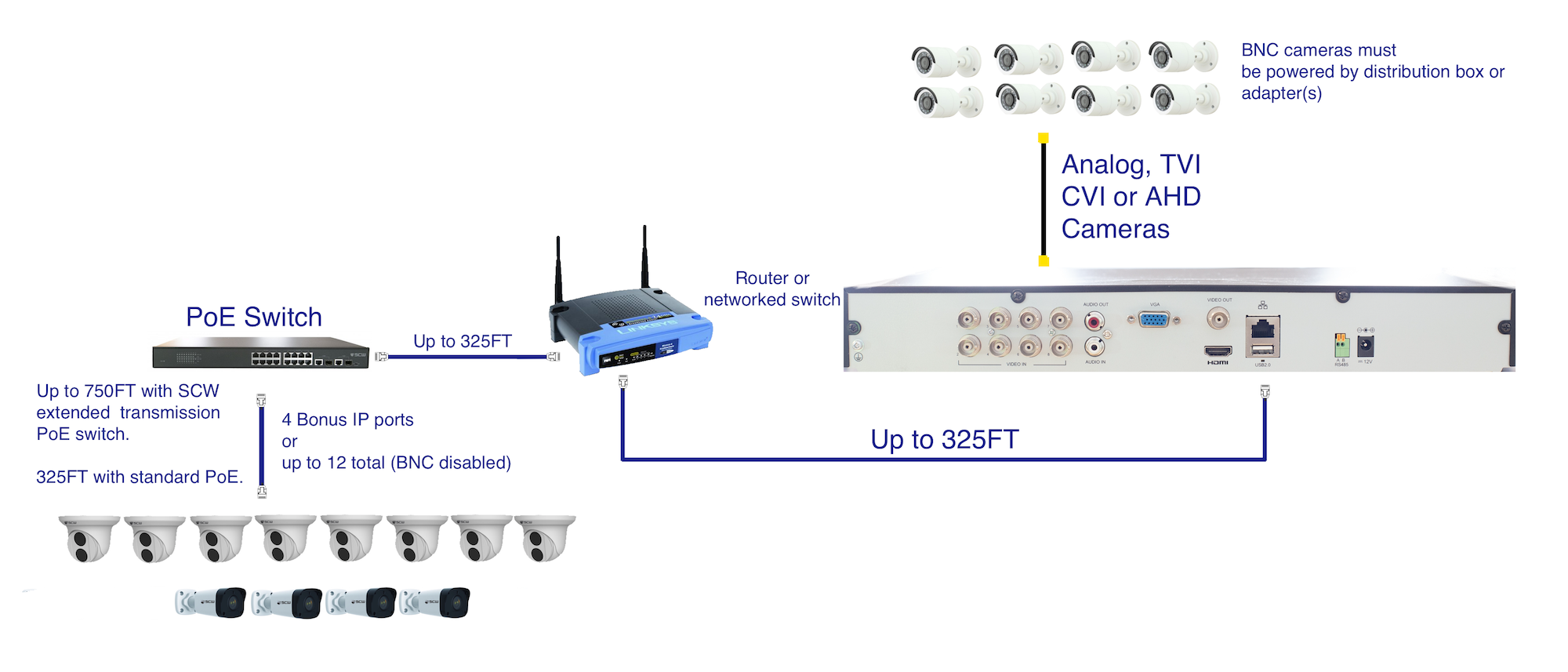 - Flexible Hybrid Technology: BNC cameras can be disabled and replaced by IP